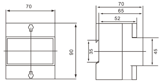 10. Meter width is only 70mm. 35mm DIN-rail installation. Similar shape as 4P breaker.